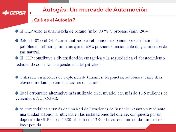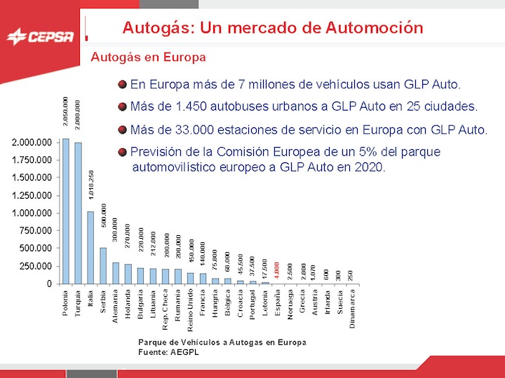 El AUTOGÁS es el GLP usado como carburante para vehículos a motor. Es el carburante alternativo más utilizado en el mundo, más de 13,5 millones de vehículos a Autogás. En Europa, 7 millones de vehículos lo usan.