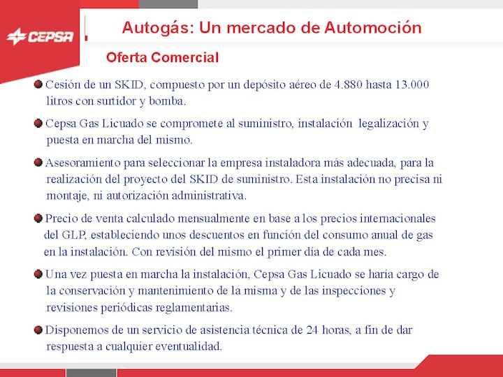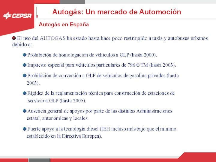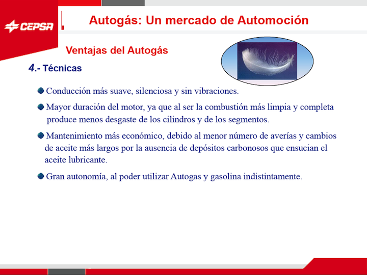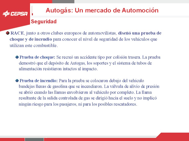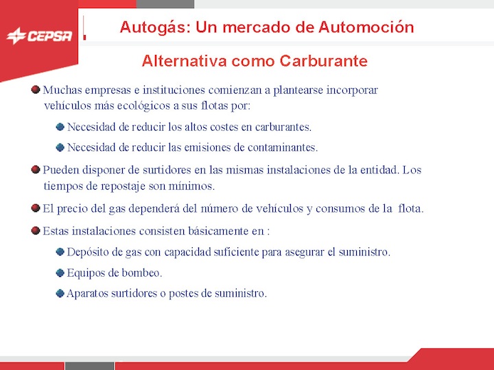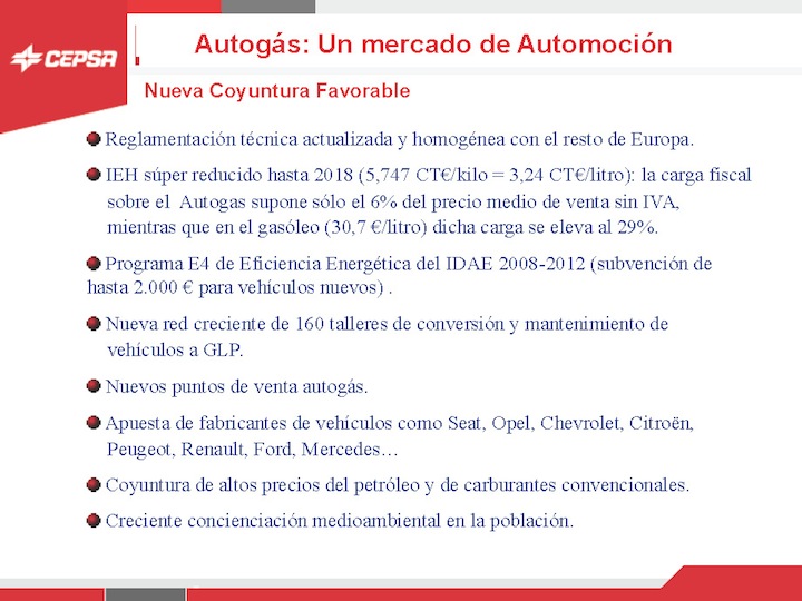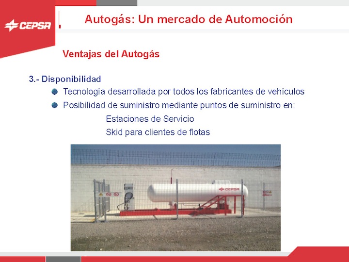 - Disponibilidad: Tecnología de almacenamiento, distribución y consumo de autogás sencilla, económica, independiente de las redes energéticas, plenamente desarrollada y de disponibilidad inmediata en cualquier punto de la geografía española..